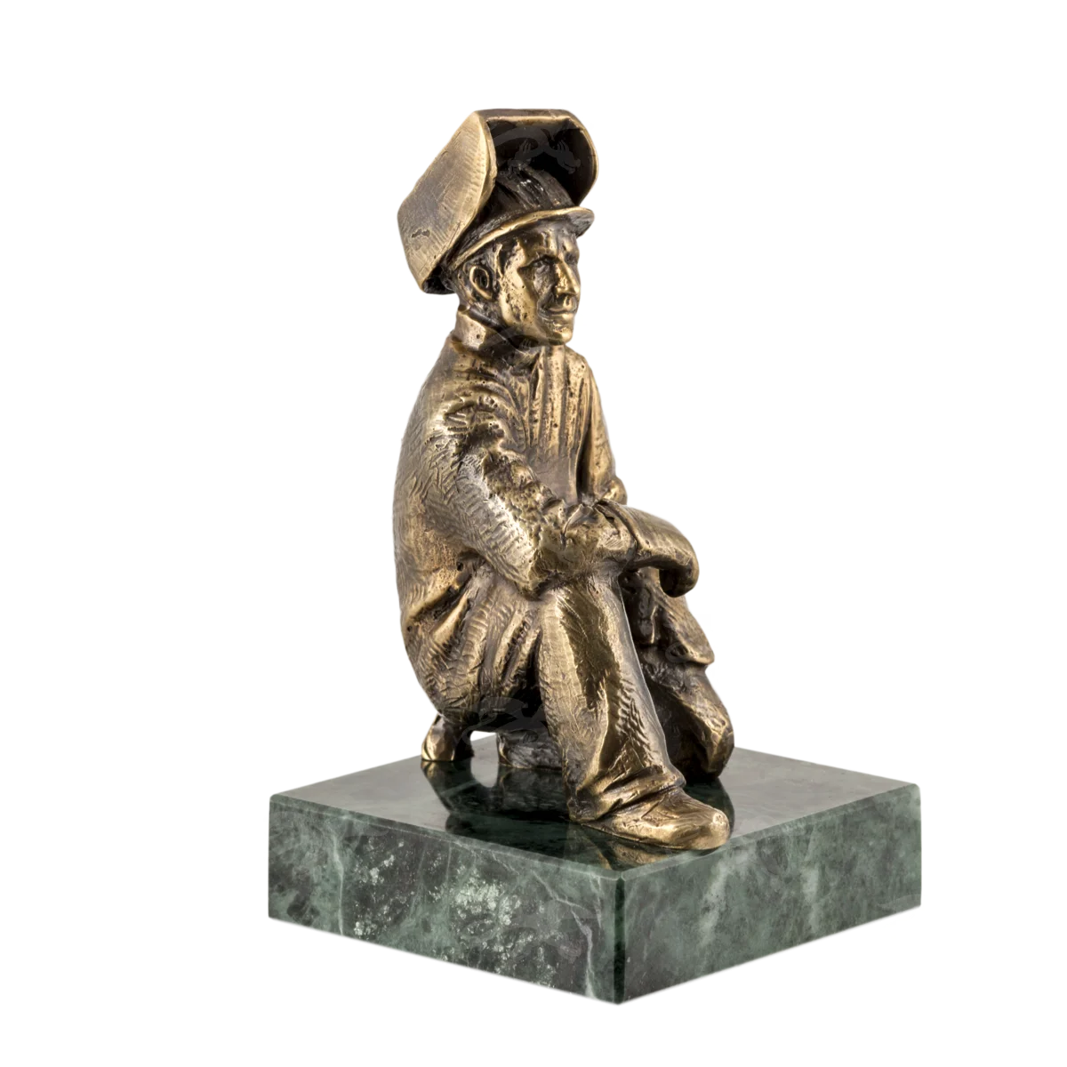 Мастерская «Калежа» изготавливает статуэтки из латуни. Образцом для таких работ может стать сварщик на колене, изготовленный по технологии бронзового литья. Для получения реалистичного изображения наши специалисты использовали чернение. Такой сувенир можно подарить коллекционеру, сотруднику строительной компании или промышленного предприятия. Работа мастеров занимает три недели.