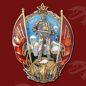 Юбилейный знак «СПН ГРУ» изготовлен из латуни. При его создании наши мастера работали с технологией бронзового литья. В центре композиции – разведчик, твердо стоящий на земном шаре в окружении красных флагов. Планету своими крыльями закрывает летучая мышь – неофициальный символ подразделения. Мастерская «Калежа» выполнит подобный сувенир в течение трех недель.