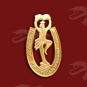 Мастерская «Калежа» создает сувениры для образовательных учреждений по оригинальным проектам. Значок Московского Культурологического лицея был изготовлен из латуни. В своей работе наши мастера применяли технологию бронзового литья. В центре композиции можно увидеть профессора, держащего раскрытую книгу над головой. Фигурка закреплена на подкове, на которую нанесено название школы. Подобные аксессуары выполняются в течение трех недель.