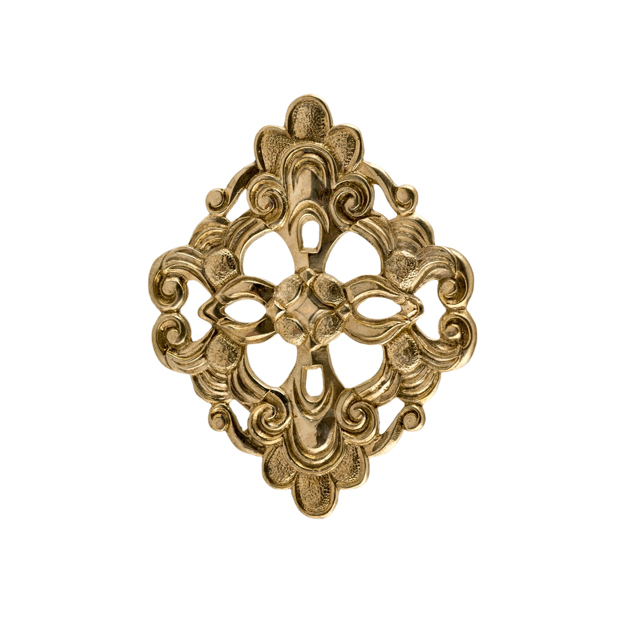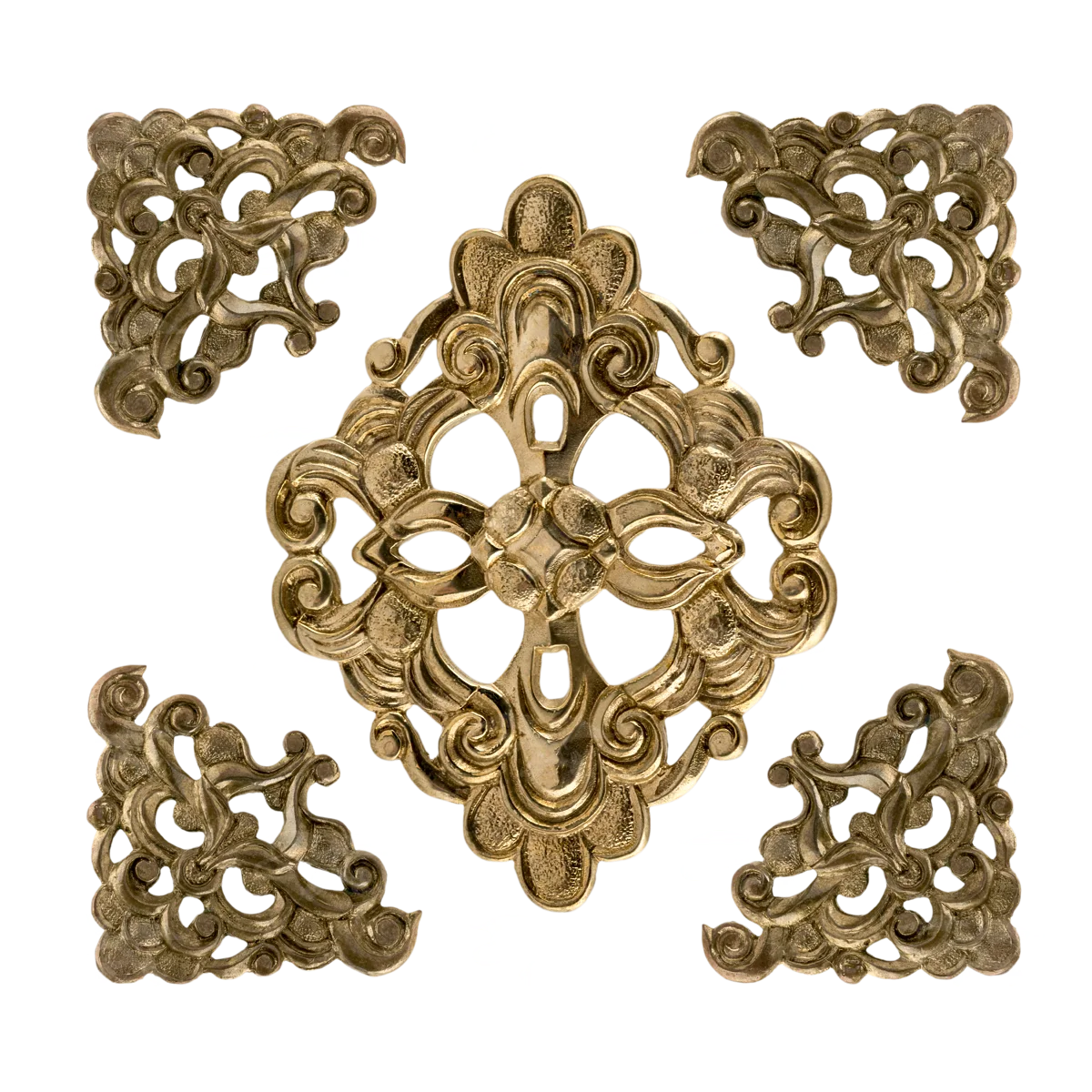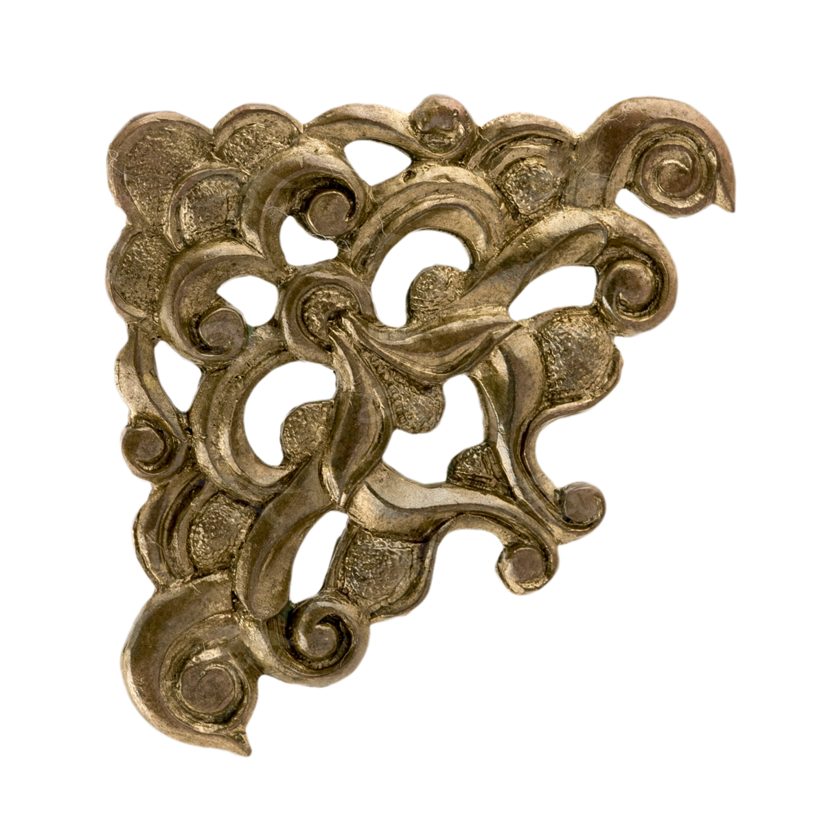 В каталоге мастерской «Калежа» представлена фурнитура из бронзы для мебели. Эта накладка на книгу отличается сложным и оригинальным декором. Она подчеркивает все достоинства переплета и акцентирует внимание на ценности книги. Искусный узор – свидетельство профессионализма наших мастеров. Стильная бронзовая накладка изготовлена по индивидуальному заказу. Вы можете приобрести изделие, имеющее лаконичное или сложное орнаментальное оформление. Накладки, созданные в мастерской «Калежа», всегда отличаются надежностью, прочностью и долговечностью.