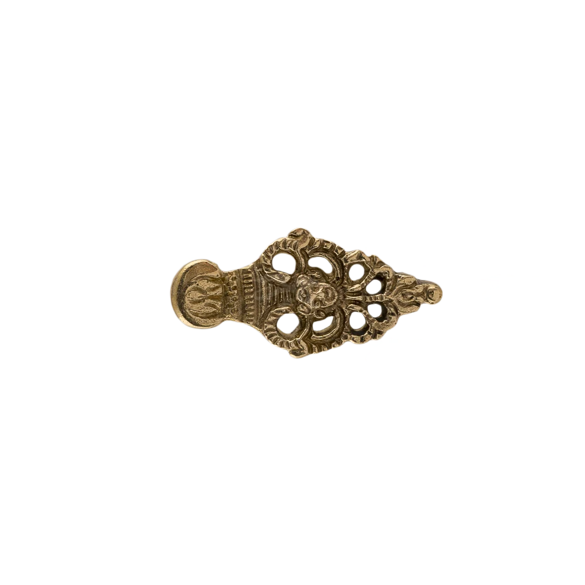 Мастерская «Калежа» – создатель уникальной утвари для российских православных храмов. Замок для книжных переплетов может быть образцом для новых аксессуаров. Мы изготовили его из латуни. При создании рельефного изображения применялись технологии бронзового литья и химической гравировки. Для реализации подобного проекта мастерам требуются три недели. Возможна работа с готовыми эскизами.
