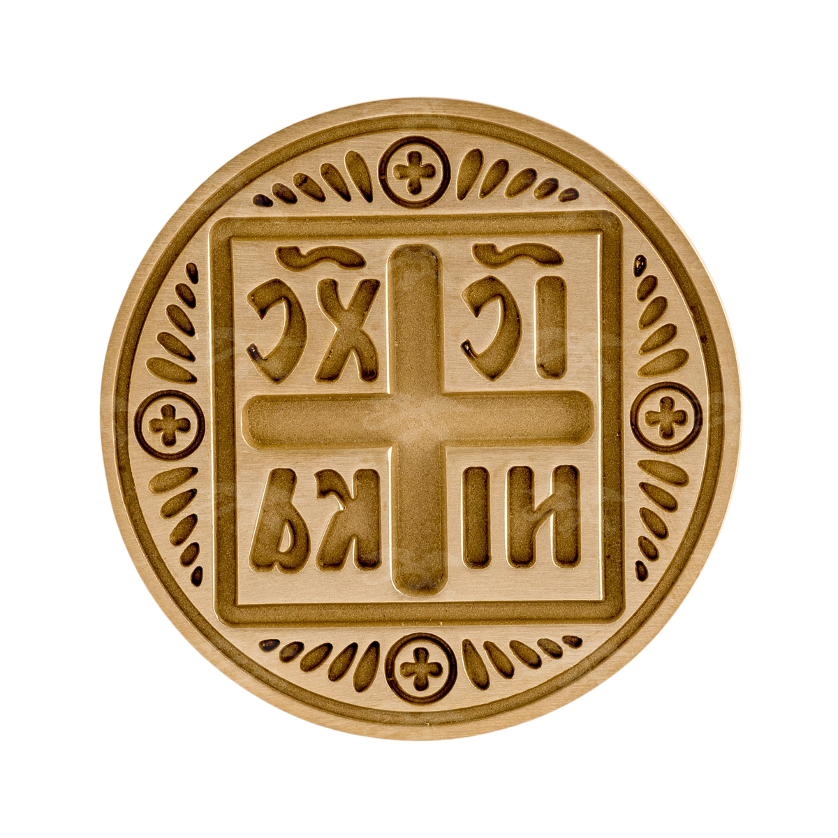 Печать крестовая предназначена для вырезания рисунков и надписей на поверхности просфор. Вся церковная утварь из каталога нашей мастерской отвечает православным традициям и канонам. Мы можем повторить для вас этот образец или создать уникальный, изменив форму и размер ручки, диаметр круга, рельефный рисунок на нем и даже оттенок металла.