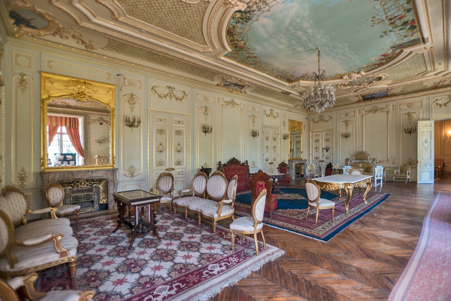 Большое помещение с округлый арками-популярный вид внутреннего убранства помещения того времени. Интерьер так же строго организован, он симметричен и изыскан во всех проявлениях. Кессонный или сводчатый потолок должен был имитировать каменную или мраморную плитку. По центру и по бокам использовалась роспись и лепнина с античными и природными мотивами. Широко использовались арабески, картуши, гирлянды, изображения львиных голов, грифонов и других мифологических животных. Пол украшался керамикой, имитирующая мрамор или самим мрамором.